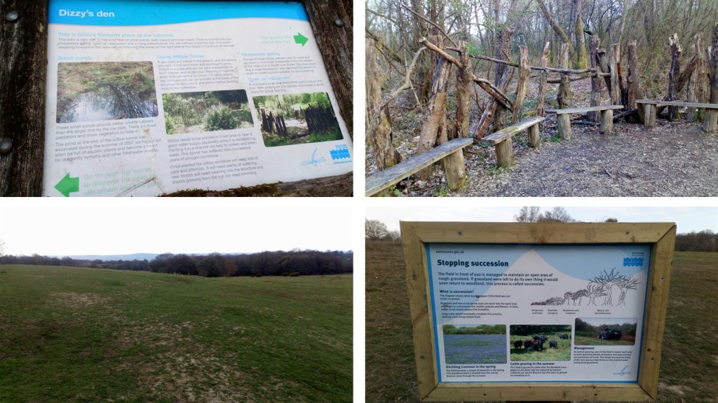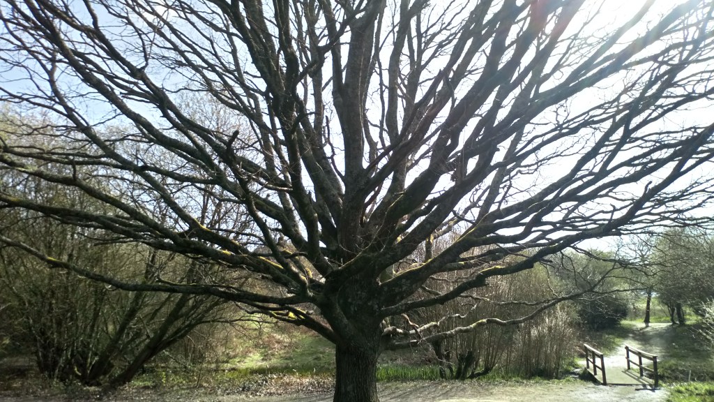 A pretty walk around a country park with striking views, a pond, open fields and woodland.