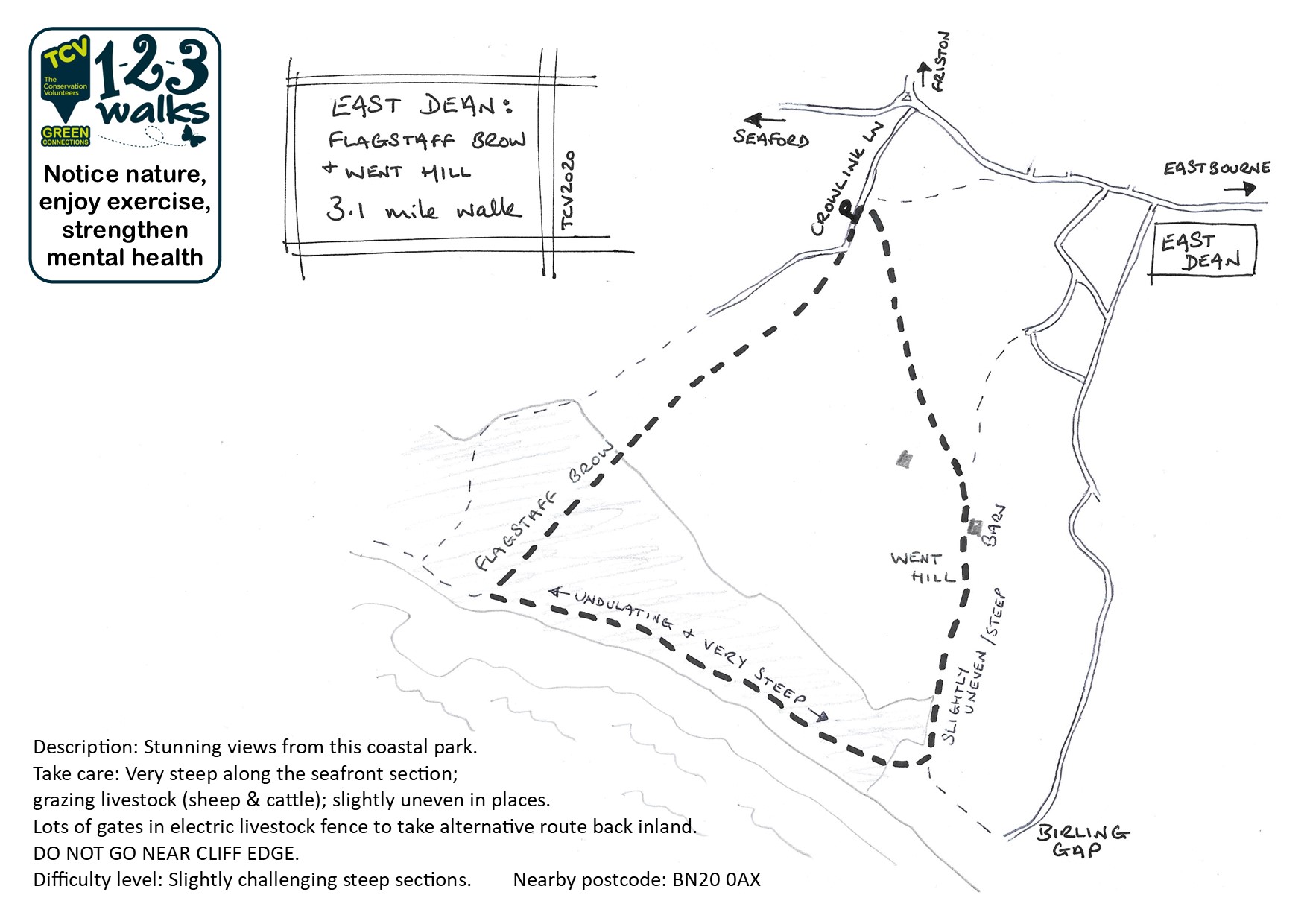 Be prepared, it is steep in places where the seafront path goes up and over the cliffs; there were sheep and cattle grazing when I walked it… and it was very cold up there early on a December morning!