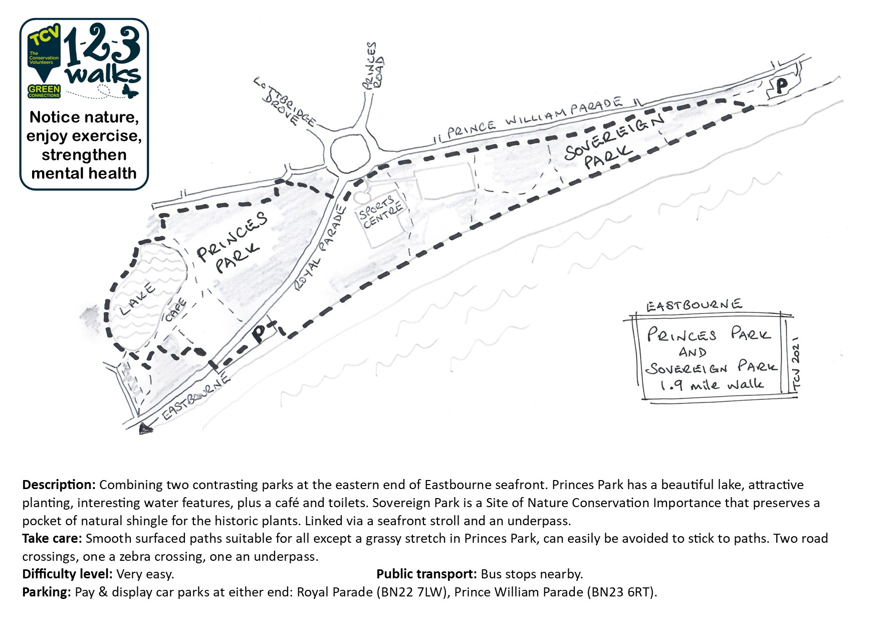 Princes Park has a beautiful lake, attractive planting, interesting water features, plus a café and toilets. Sovereign Park is a Site of Nature Conservation Importance that preserves a pocket of natural shingle for the historic plants. Linked via a seafront stroll and an underpass.