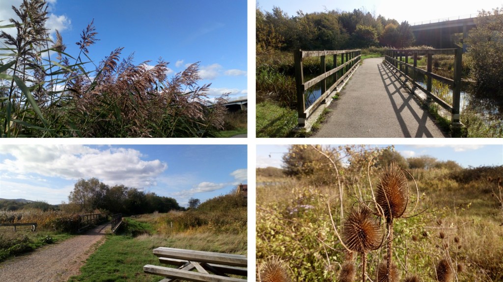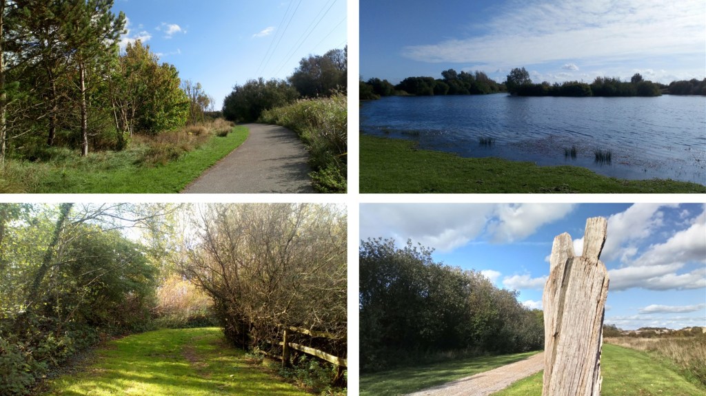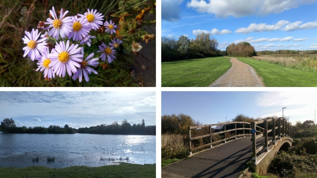 Accessibility: No steps or stiles, some footbridges with small lip only; suitable for all users, but not possible to make shorter. For most of the walk, the lake is behind trees, you can only see it from a couple of “Lake View” spots, both grassy access.