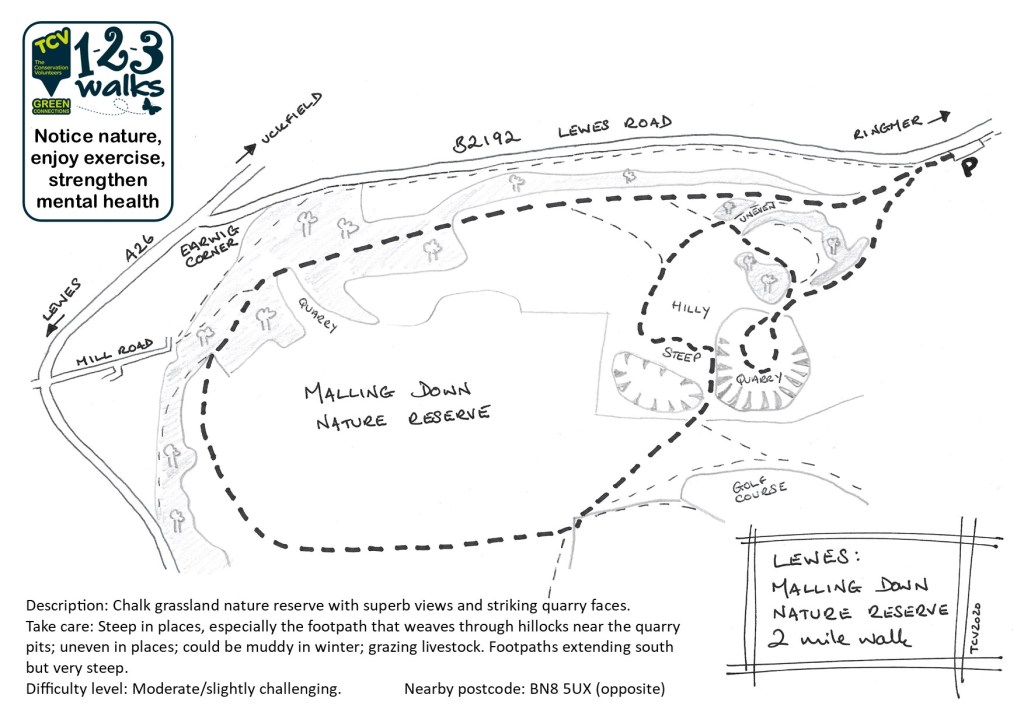 Perched on the hill to the east of Lewes, this nature reserve has stunning views across the countryside, over the town and includes striking quarry faces.