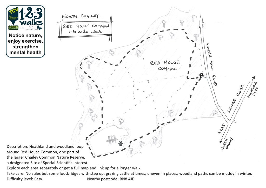 Parking: free on site car park at Red House Common, plus other free car parks around the Common. Public transport: nearby bus stops in North Chailey.