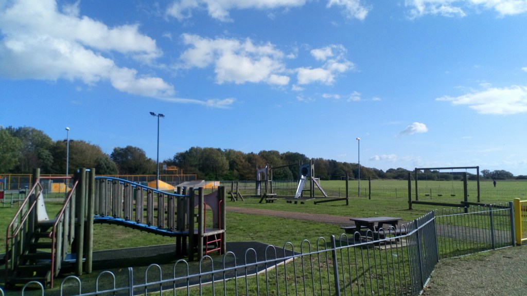 This is a very lovely newly-restored park with some woody sections, a lake, smooth paths and several sections of varied and lots of different sorts of children’s play equipment. Free parking at the Community Centre. Nearby postcode: BN27 4EP