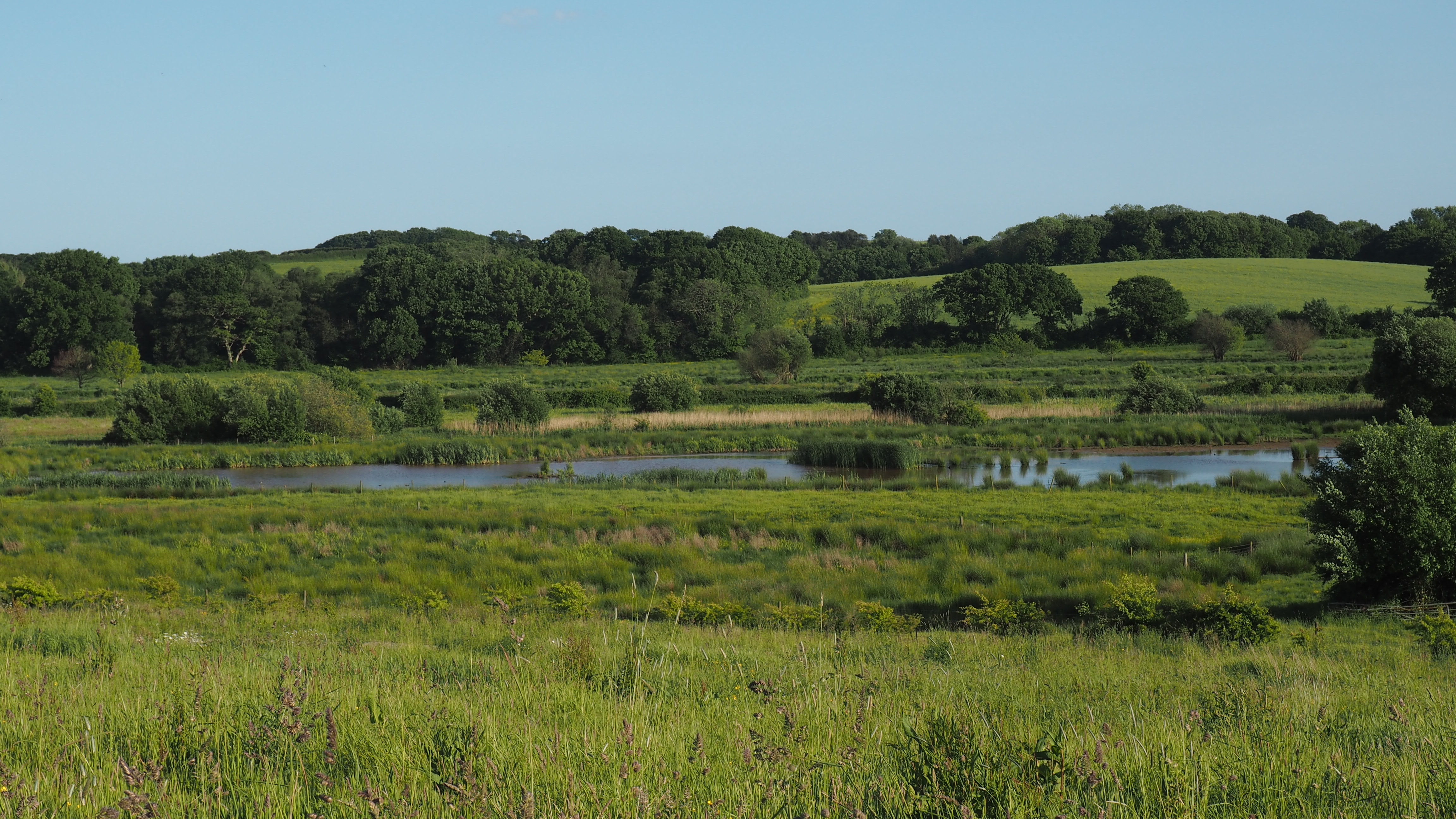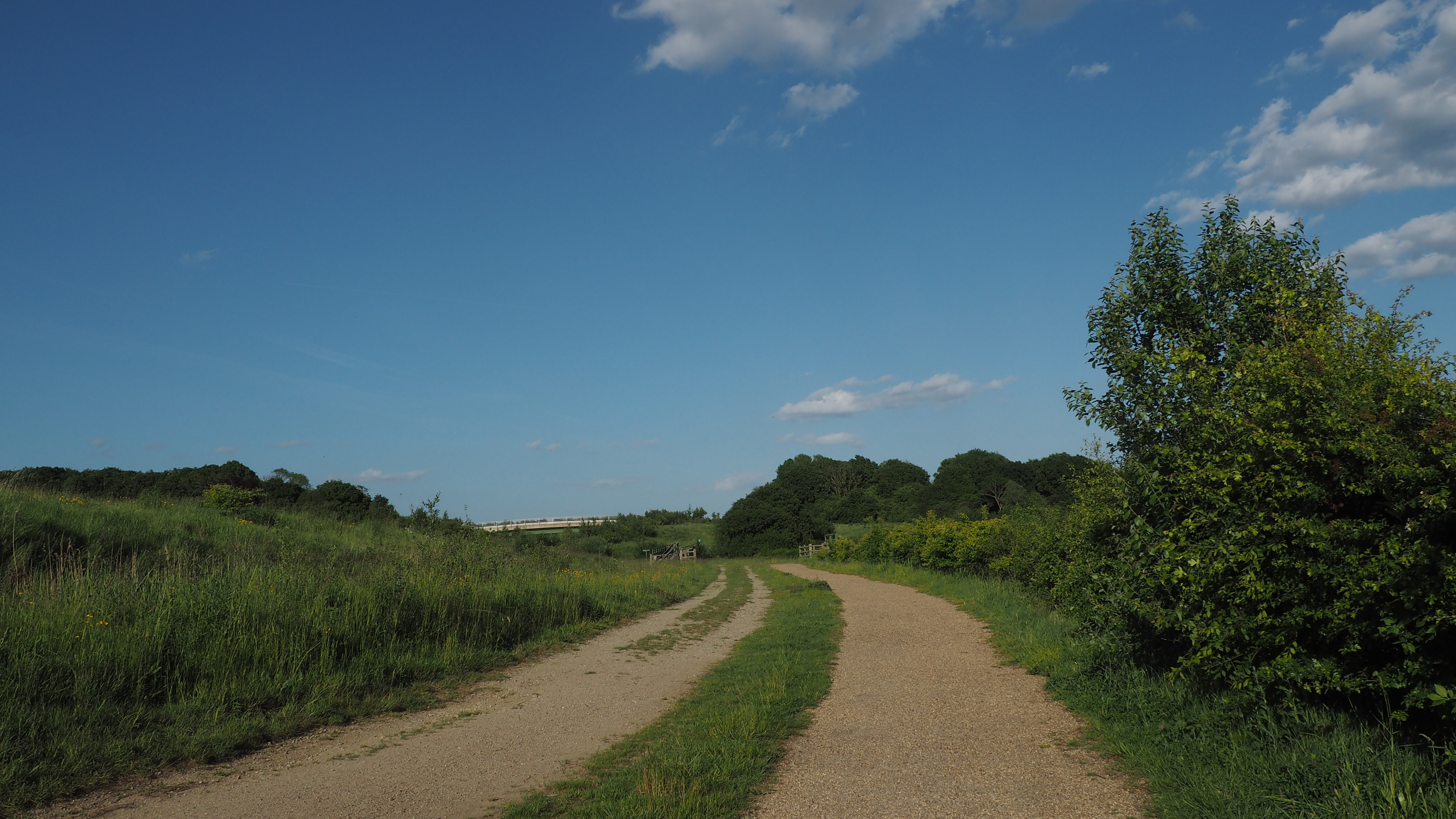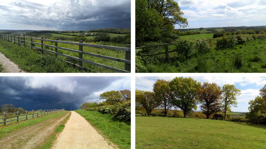 A surfaced track through Combe Valley Countryside Park with stunning rural views.