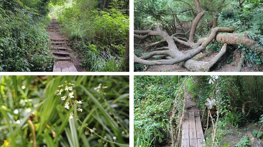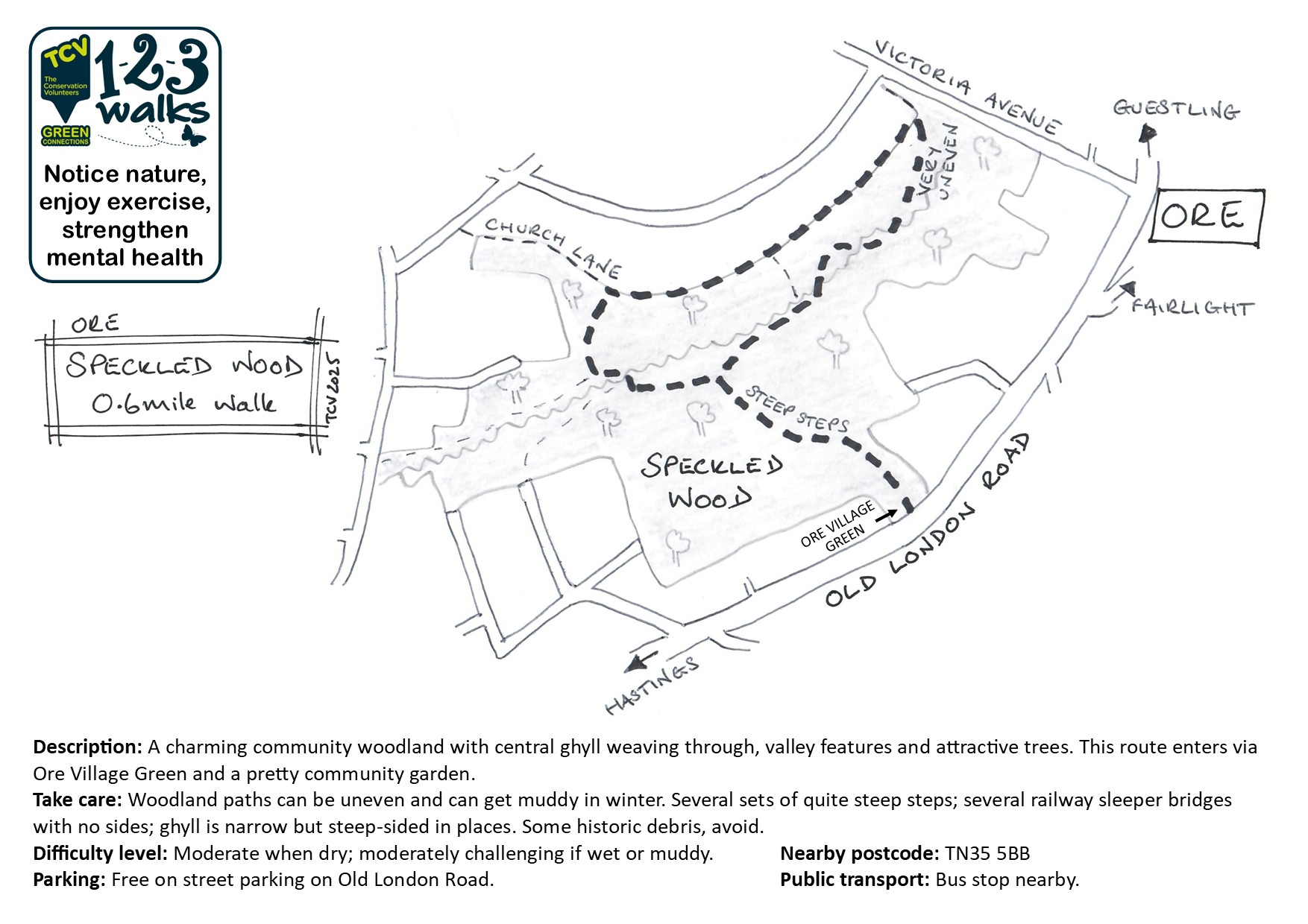 A charming community woodland with central ghyll weaving through, valley features and attractive trees. This route enters via Ore Village Green and a pretty community garden.
