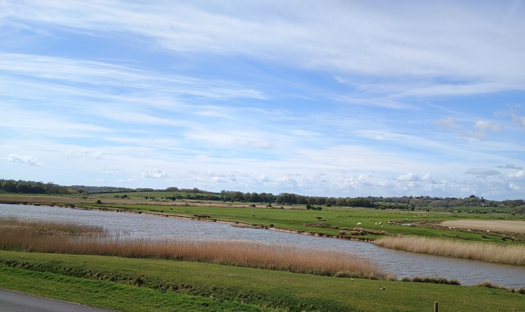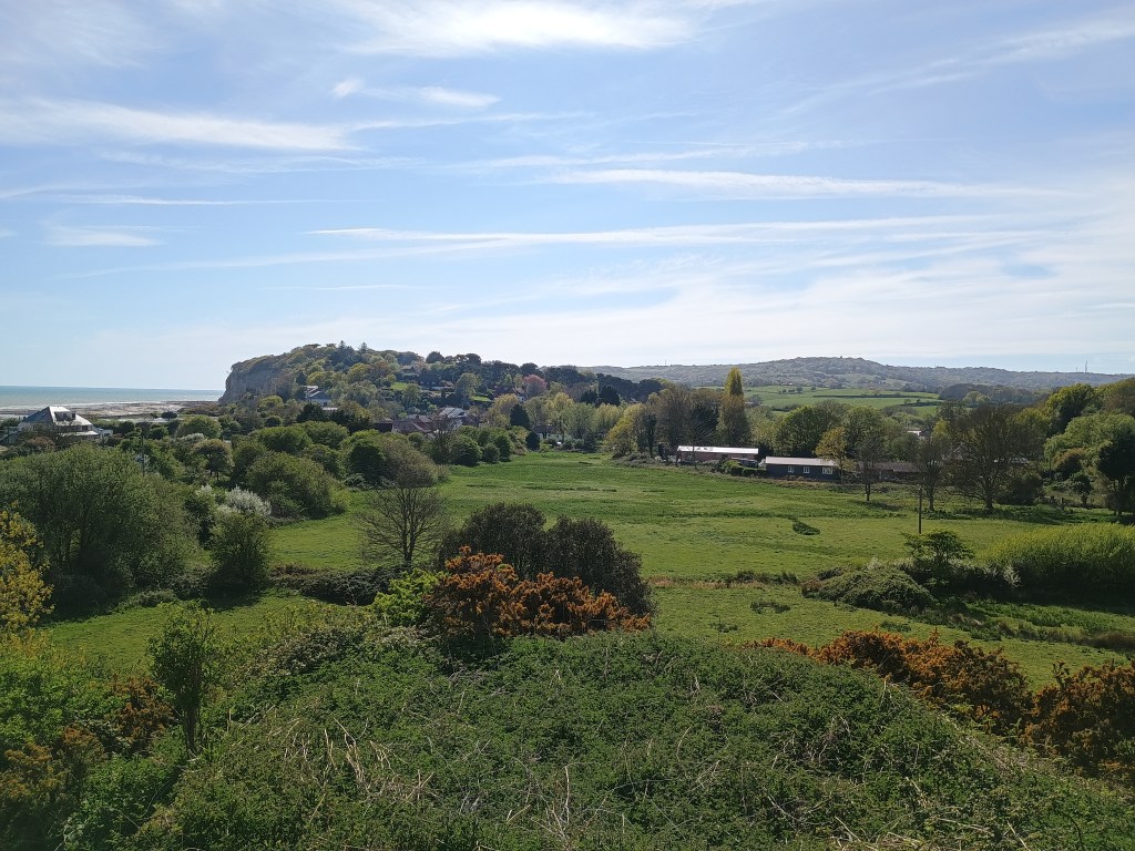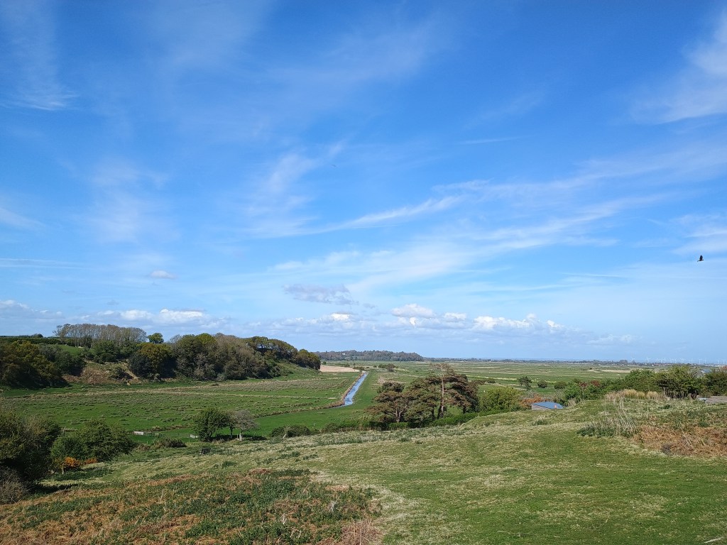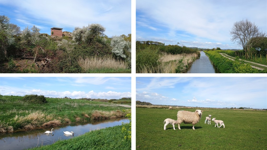Lots of grazing sheep and sometimes cows, and a couple of big stiles, one of them wobbly.
