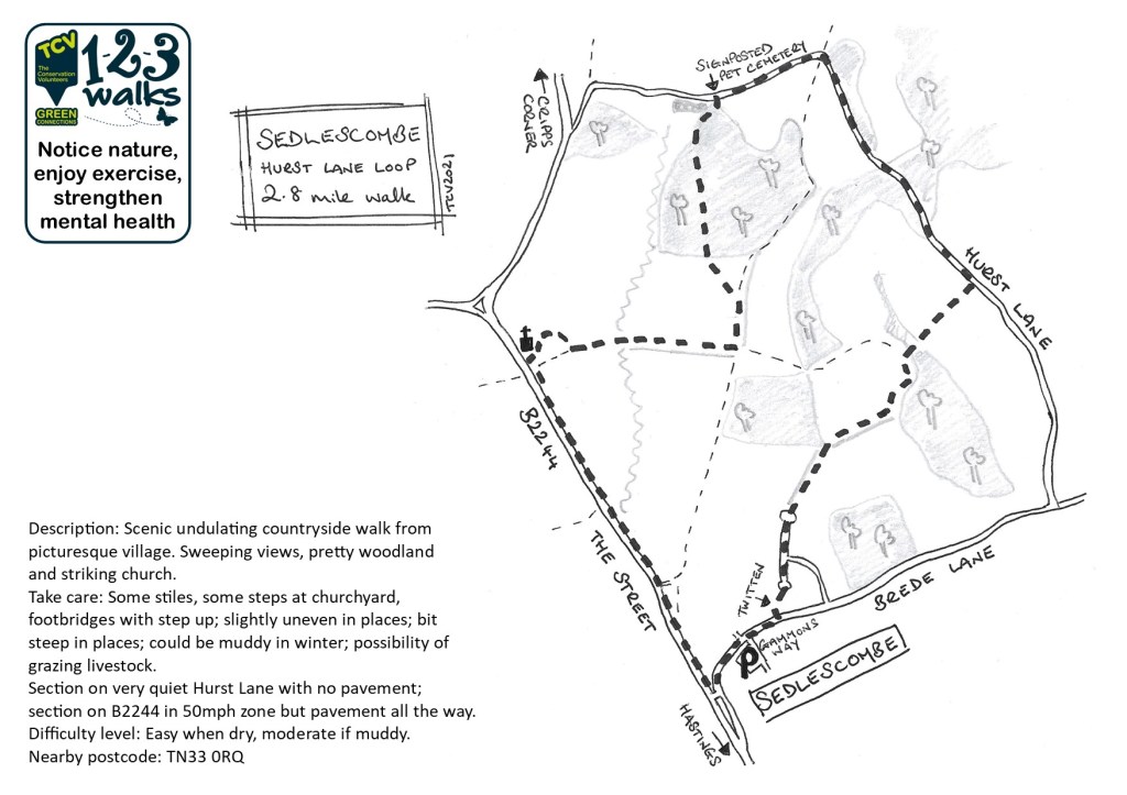 To follow an interactive map on your phone, install the free Map my Walk app and see our “How to” page. If you are following on your phone, remember that signal can be patchy in rural areas or dense woodland, we strongly recommend a printed map or screenshot backup.