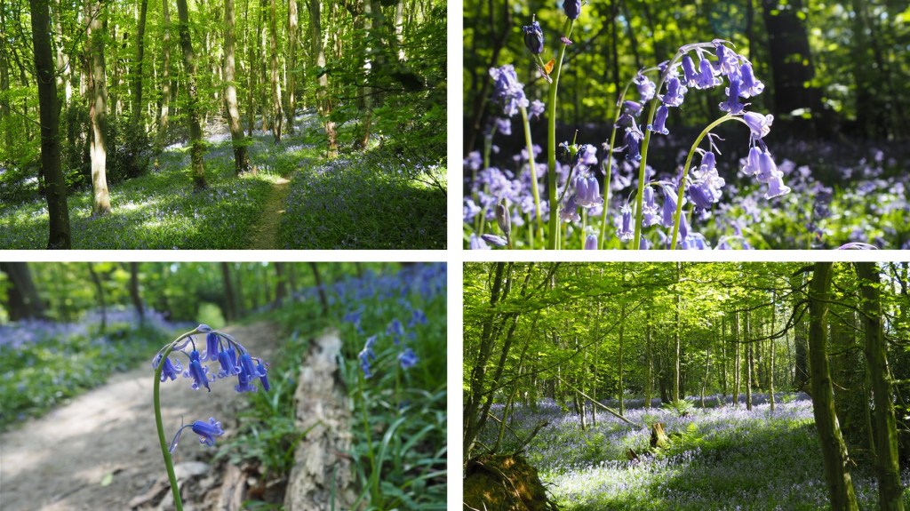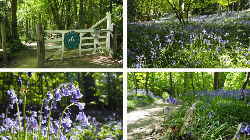 Undulating rural footpaths with lovely views, a bluebell wood and a striking church with signature trees. Look out for the free range geese on the green!!!