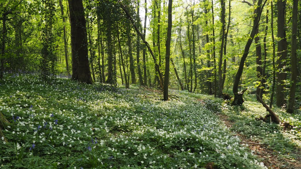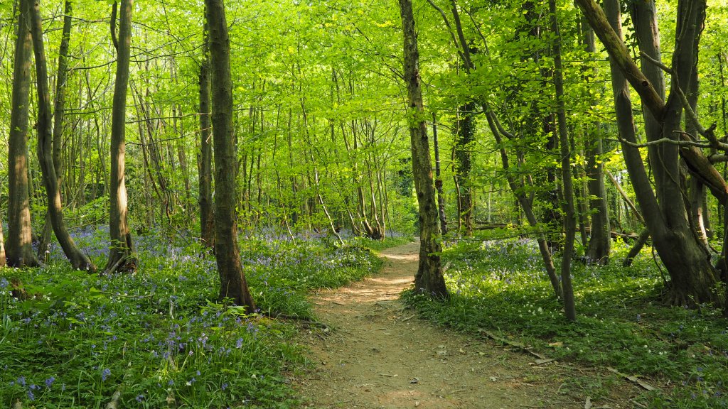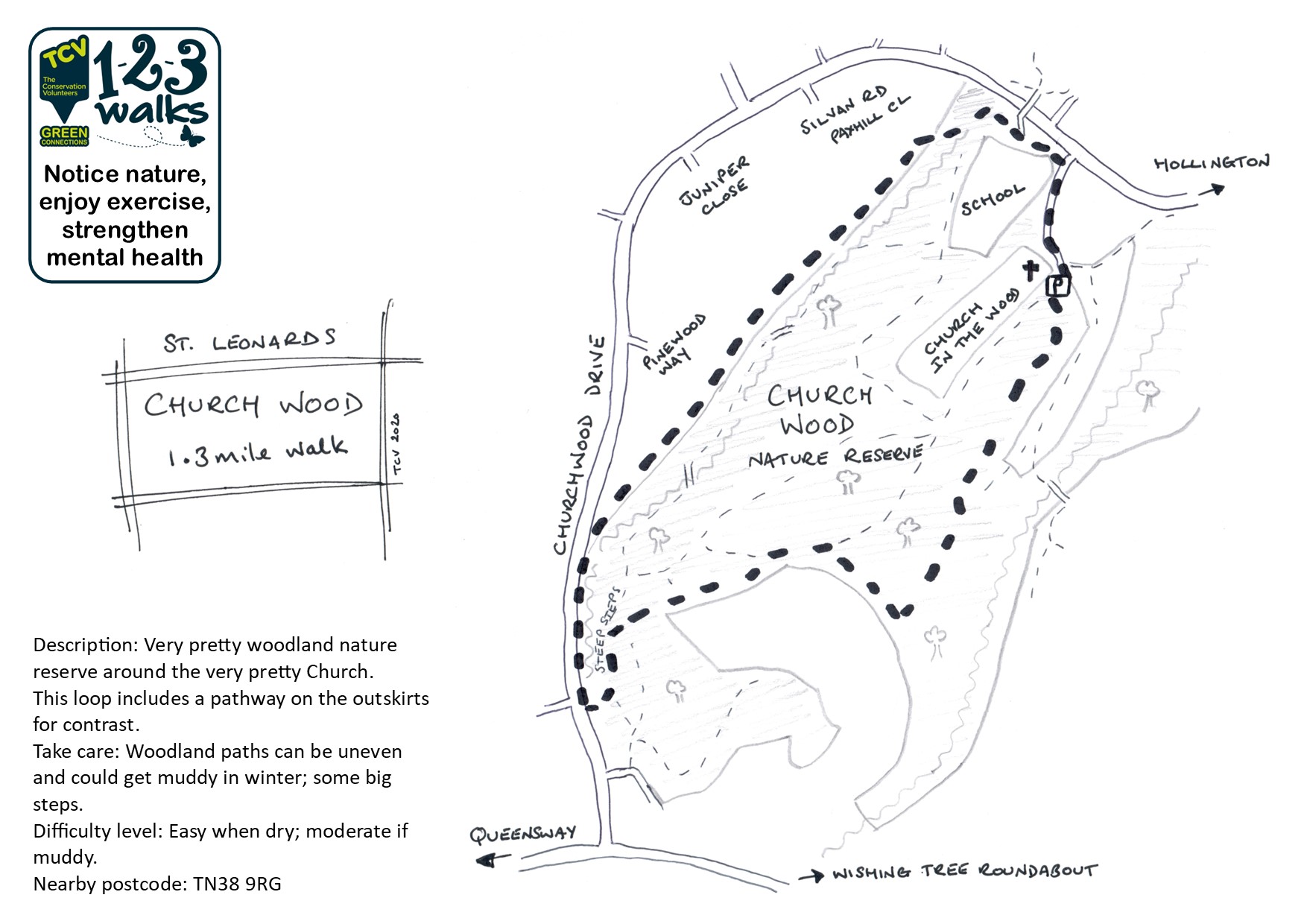 A charming woodland nature reserve wrapped around a very pretty church. This route incudes a bit of path on the outside for contrast.