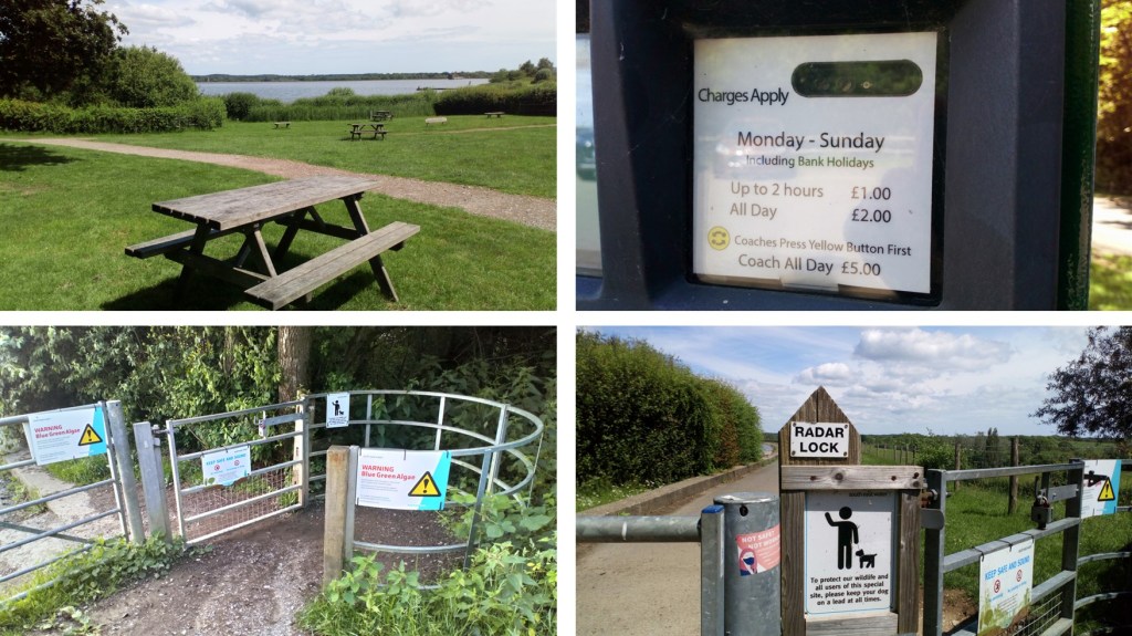 On site cafe and picnic benches. Some of this route would be suitable for wheelchairs/pushchairs, setting out clockwise from the car park, but not behind the farm so not a loop. Opportunities for longer walks, please get a larger map.