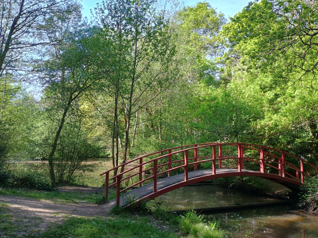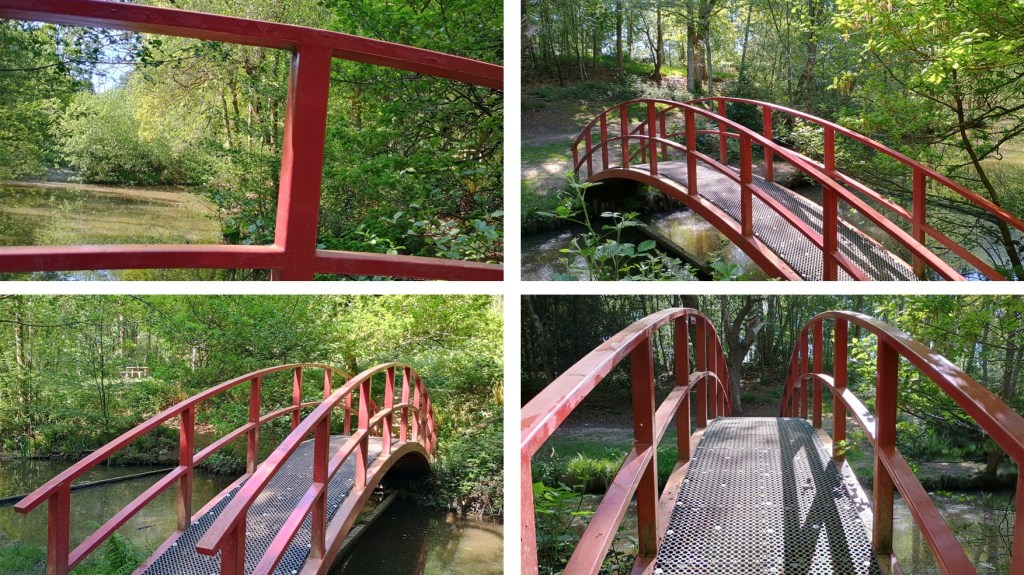 A very pretty public access community woodland managed by Cross in Hand Amenities Society. Includes several remarkable specimen veteran trees, a central ghyll weaving through crossed by lots of little bridges, and a feature pond with a striking red bridge and picnic benches.