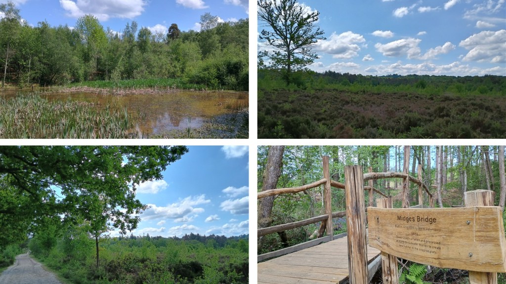 Broadwater Warren 3m Heathland & Woodland Trail – follow green arrows anti-clockwise out of car park or click here for Map My Walk link.