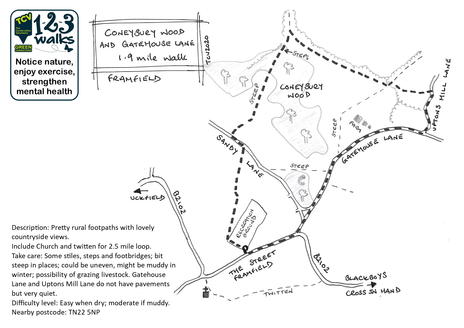 A cracking walk through rolling Wealden countryside. Add in the Church and twitten for a slightly longer walk and admire the amazing lych gate!
