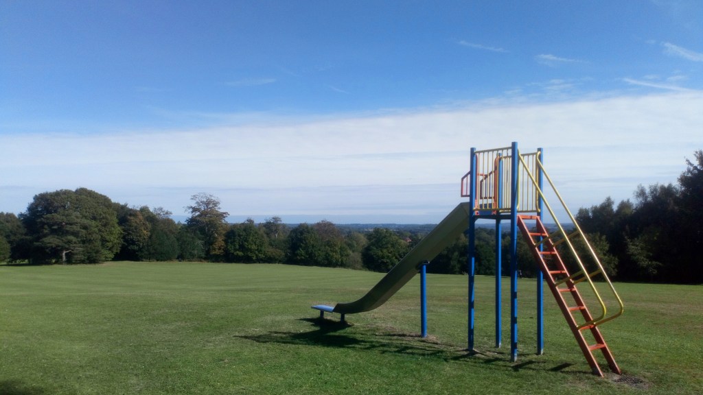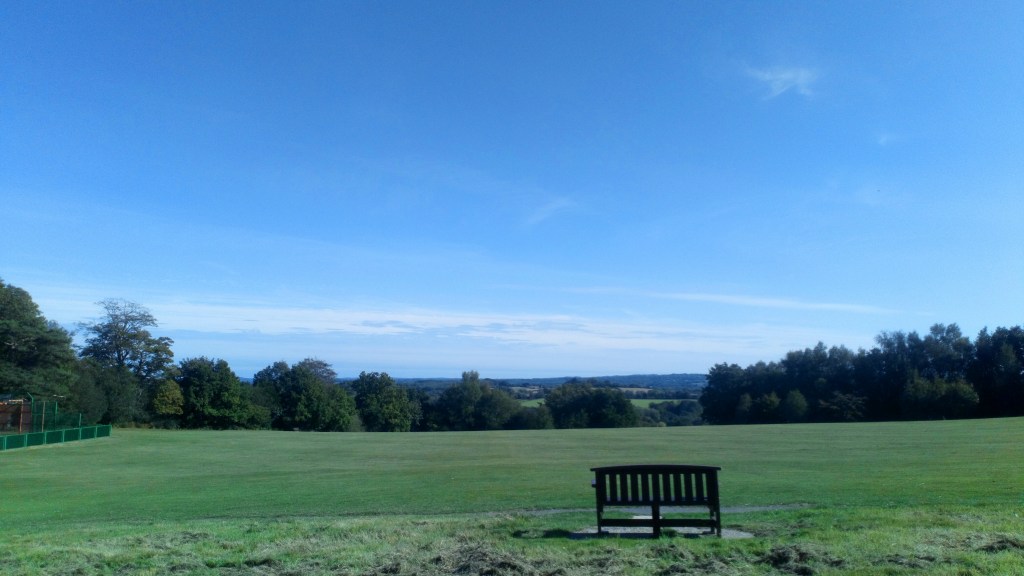 This walk crosses the playing field and goes down public footpaths to Vicarage Wood… with awe-inspiring views along the way.