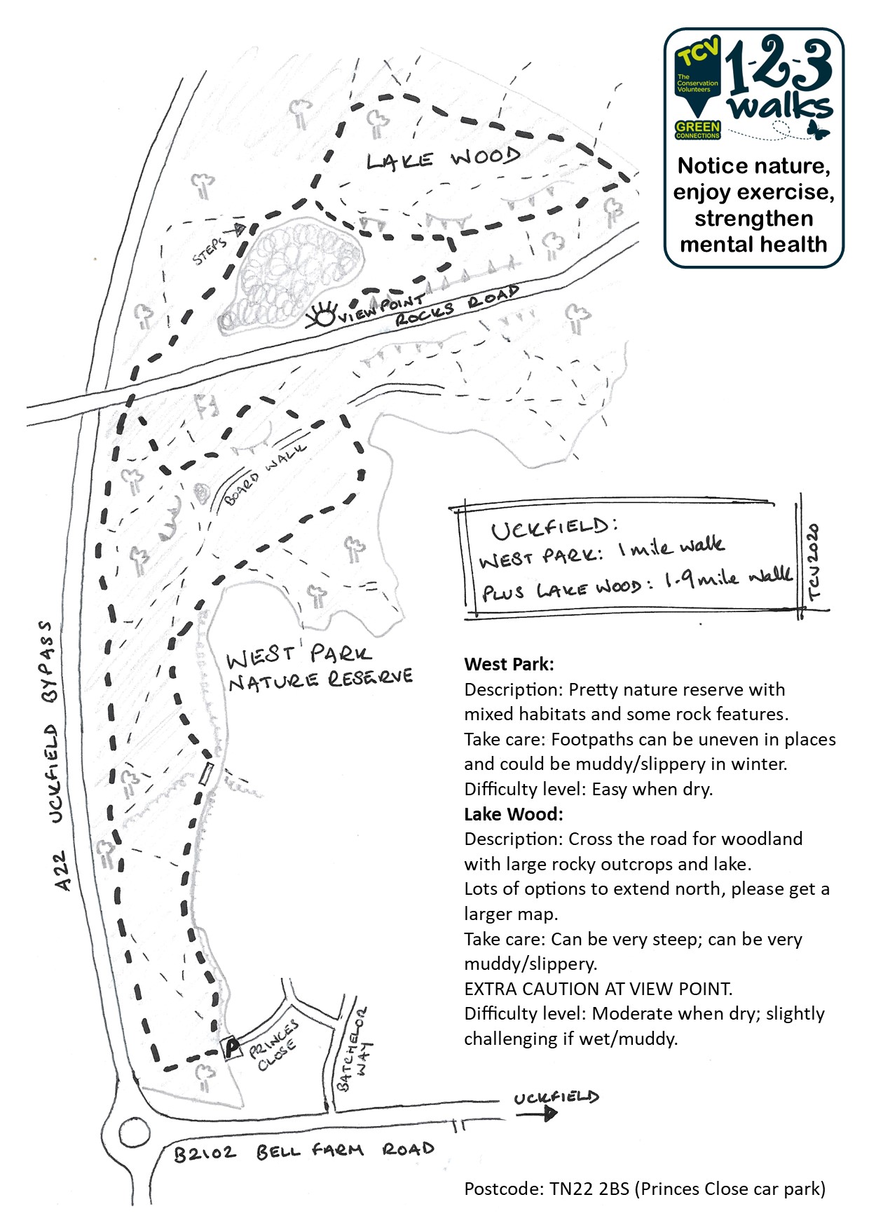 Parking: small free car park on Princes Close. Public transport: approx 0.75 miles from station.